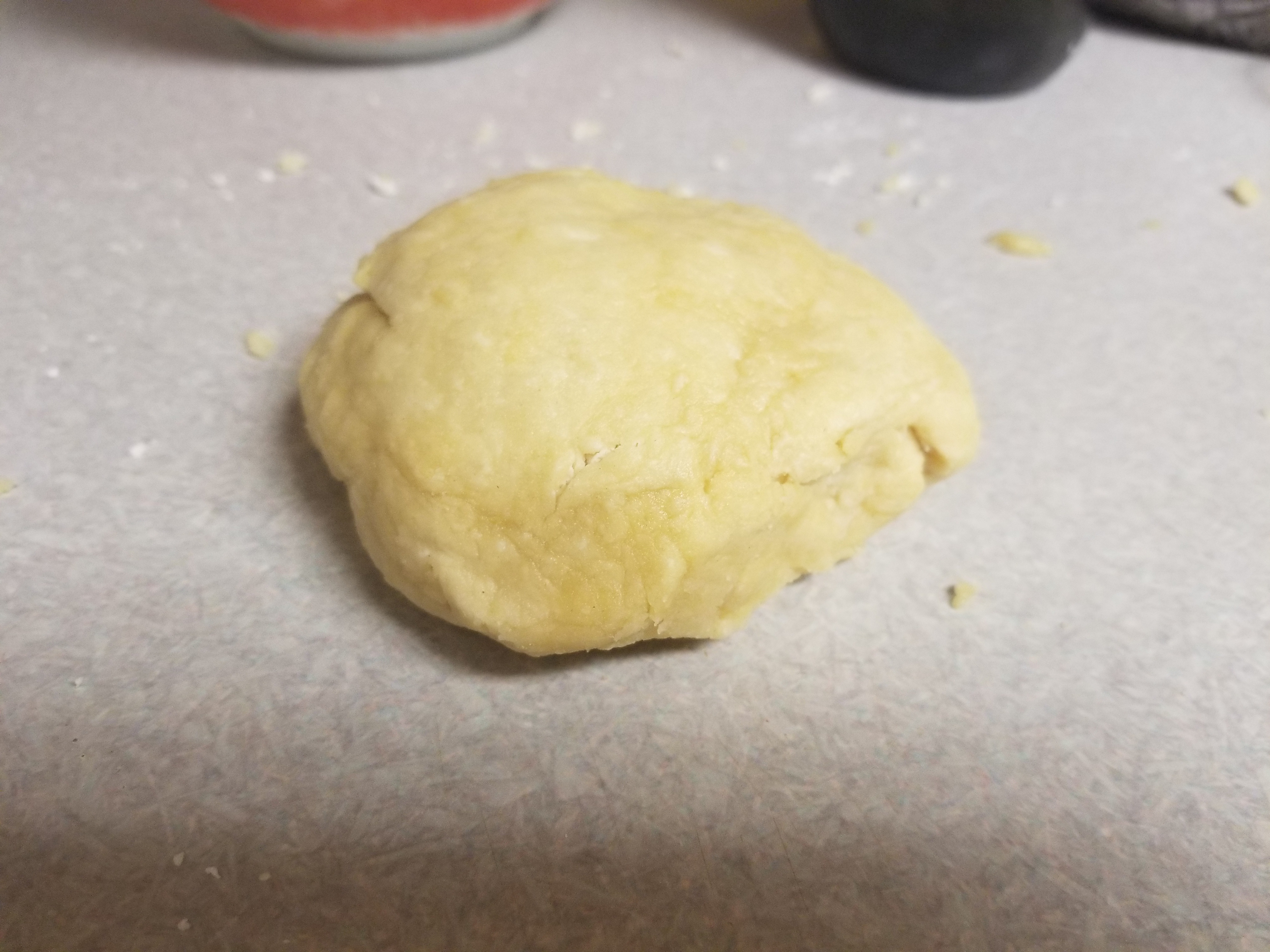 The dough ball should not be hard but also not be soft. Wrap it up in plastic wrap and let it sit at room temperature for an hour. This will make it easier to work with.