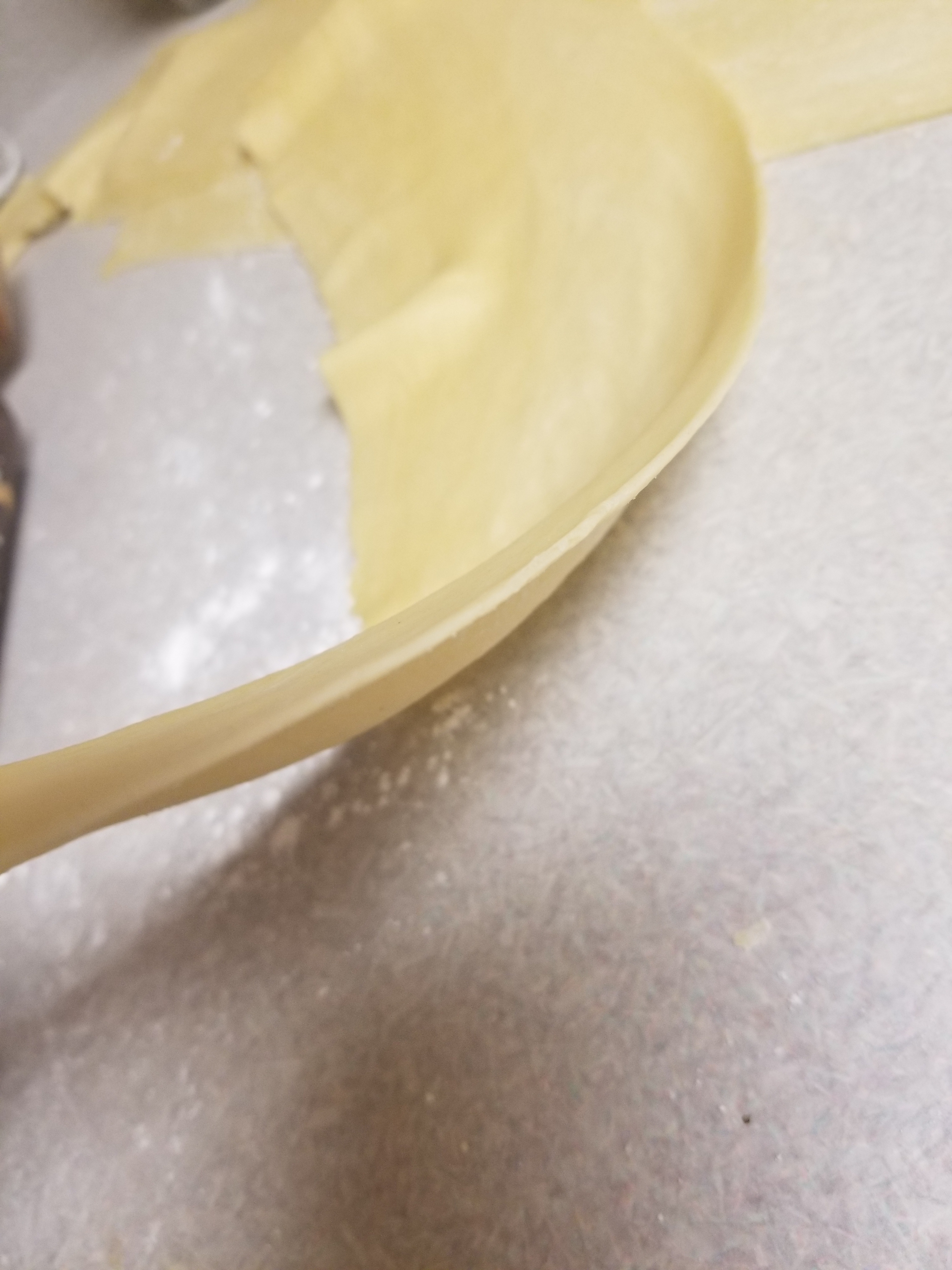 Cut the dough into 3 equal sized parts and with either a pasta roller or a rolling pin, roll each portion of dough very thinly.